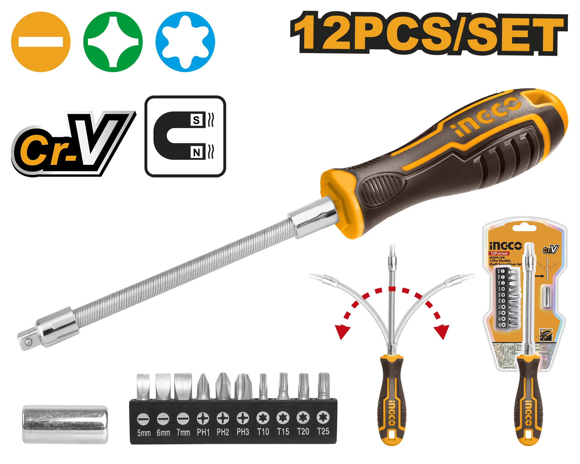 Unleash Precision with the Ingco 12-Piece Flexible Shaft Screwdriver Set (AKSDFL1208)