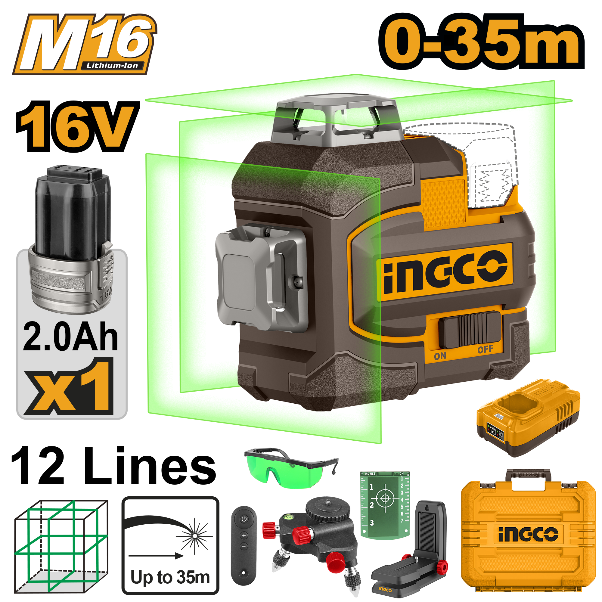INGCO 16V 0-35M Cordless 3D Laser Level , HLL301201 – Buytoolkit