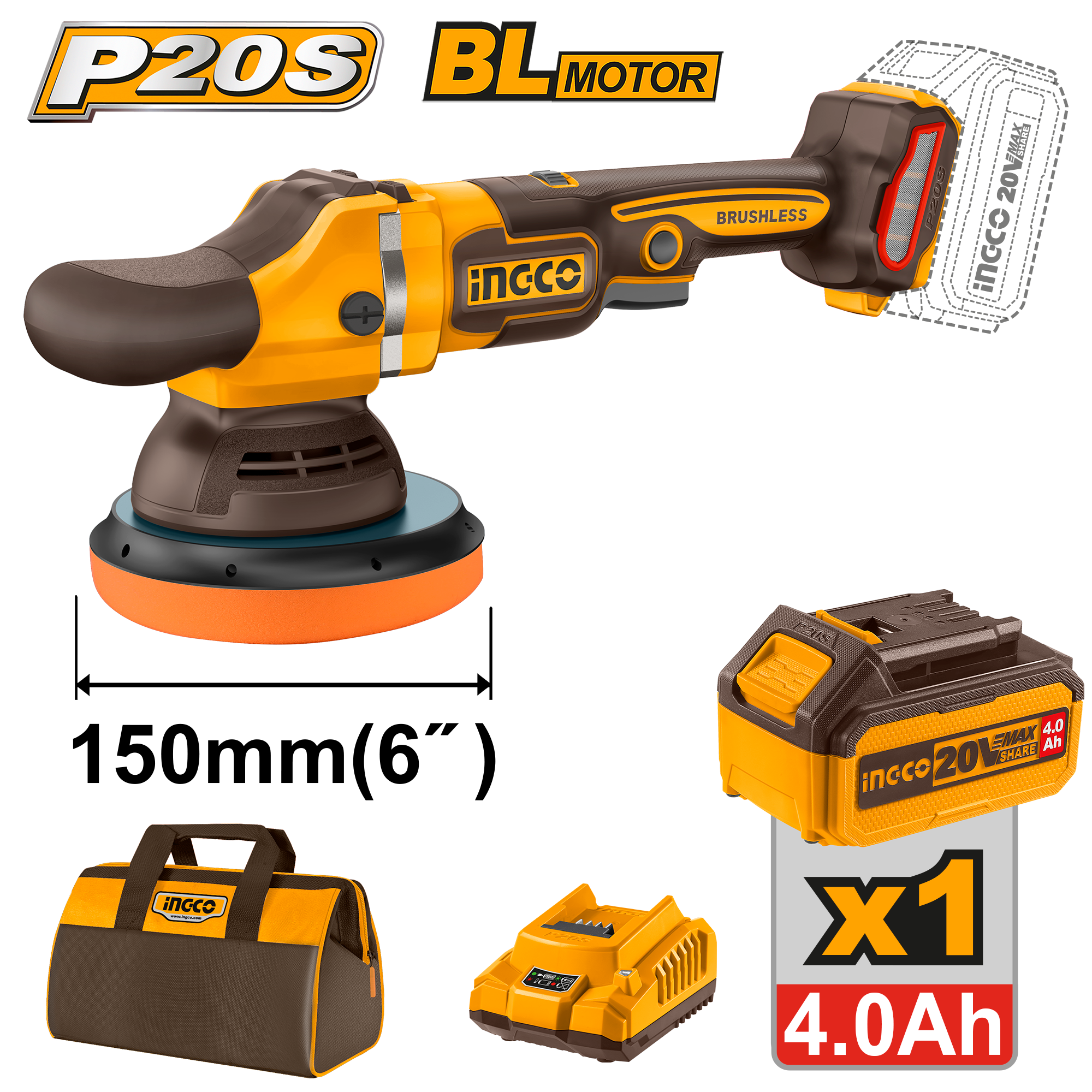 The INGCO 20V 150MM Cordless Polisher (Model: APLI20151) is a high-performance tool designed for professional and DIY polishing tasks on cars, furniture, and metal surfaces. Powered by a 20V brushless motor, it delivers efficient, consistent performance with reduced wear and extended runtime.