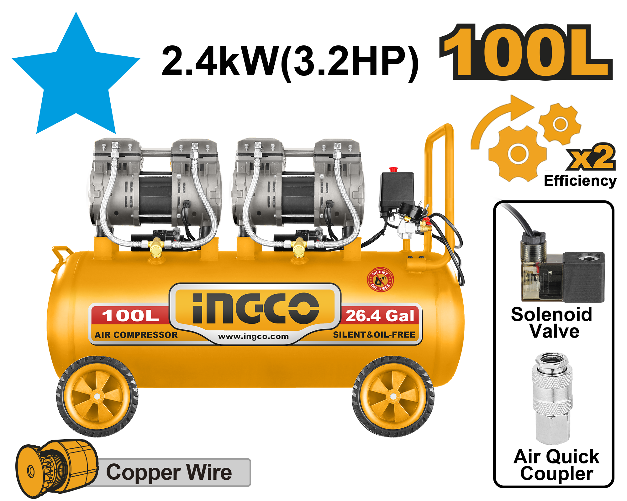 Tags: 100L tank compressor, 2×1200W compressor, 26.4Gal tank compressor, 2850rpm air compressor, 3.3HP air compressor, 8bar pressure compressor, ACS2241001, copper motor air compressor, durable air compressor, heavy-duty air compressor, high-pressure air compressor, industrial air compressor, Ingco Air Compressor, INGCO power tool, oil-free air compressor, plywood packed air compressor, professional air compressor, quiet air compressor, reliable air supply, workshop air compressor