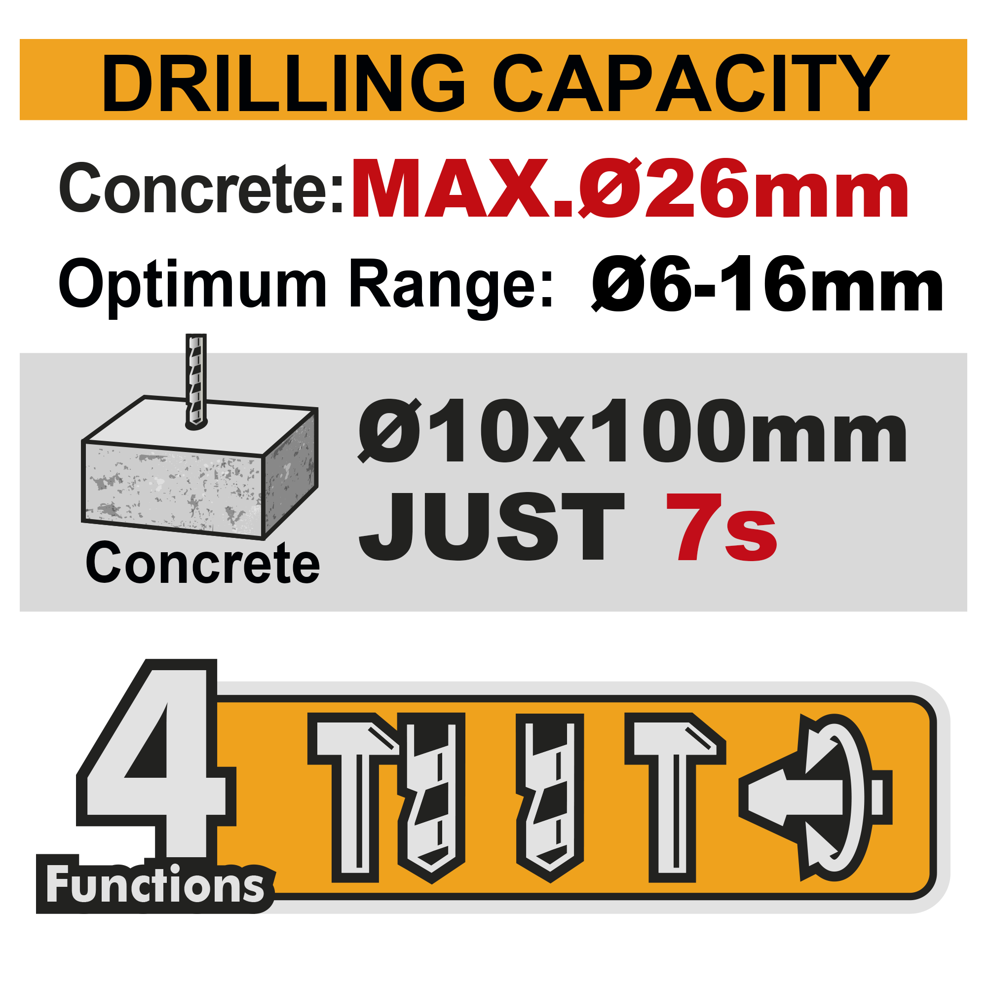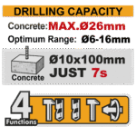 With a no-load speed of 0–1100 rpm, it ensures efficient drilling while maintaining control and precision. The SDS plus chuck system allows for fast and secure bit changes, while the integrated LED work light enhances visibility in dimly lit areas, making it easier to work in tight or challenging spaces.