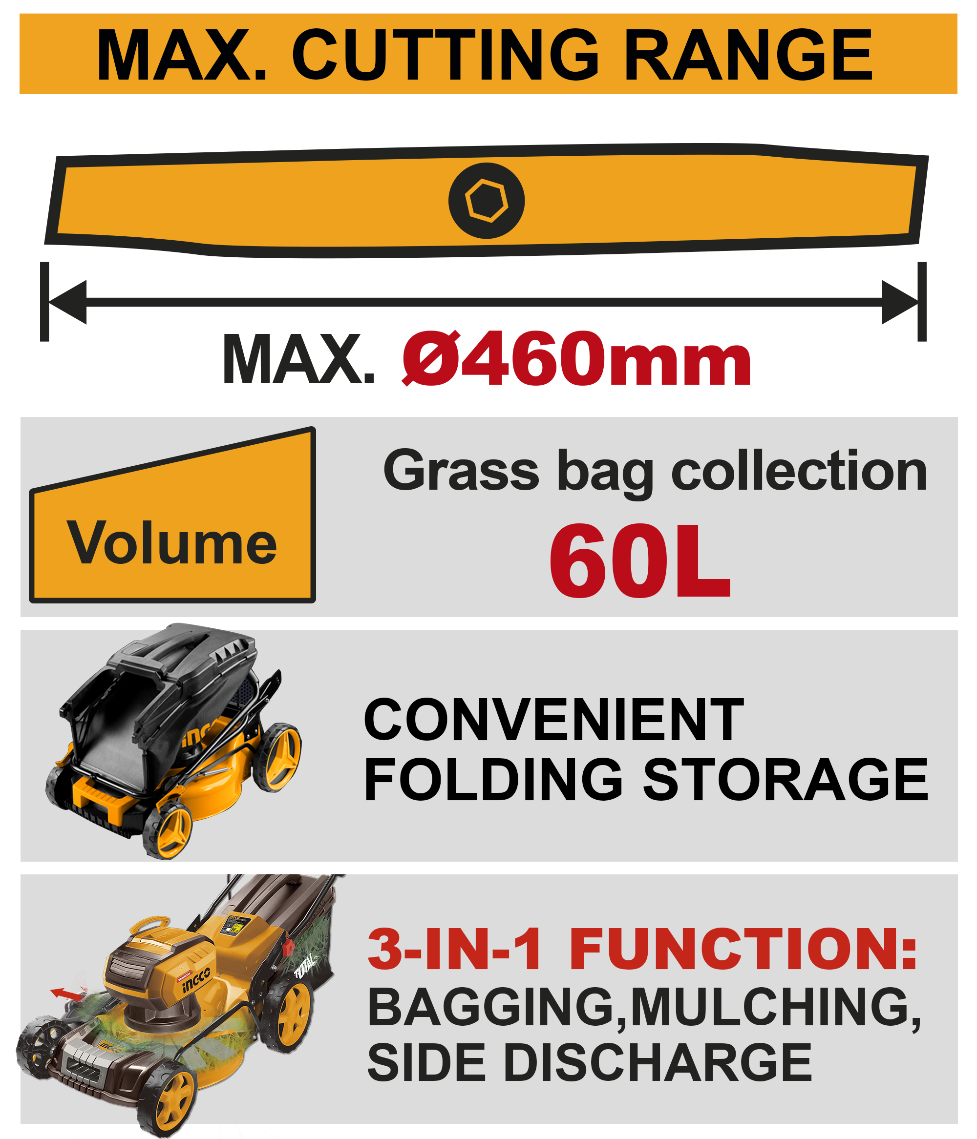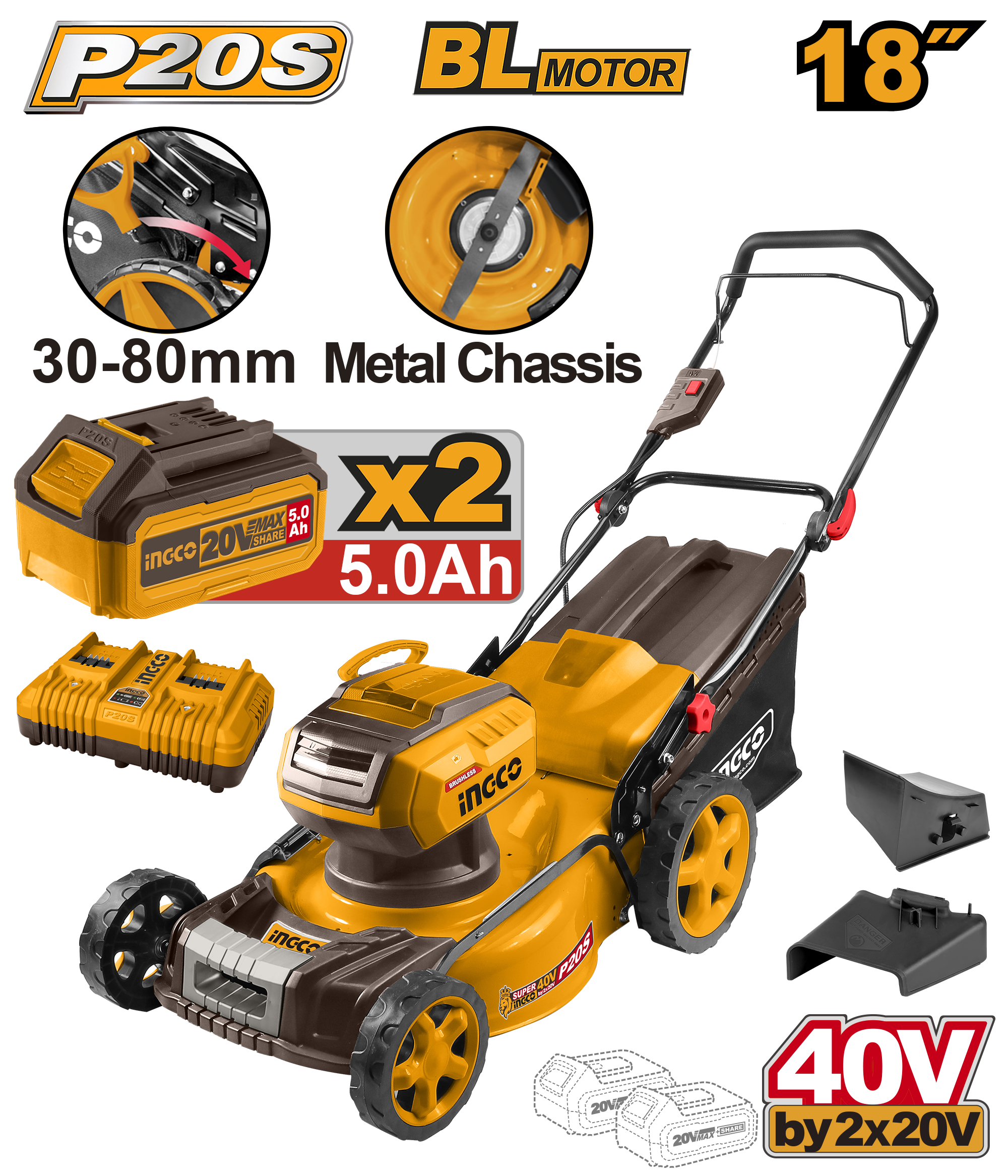 Tags: 3-in-1 mower, 40V grass cutter, 42V lawn mower, 460mm cutting mower, adjustable height mower, bagging mower, battery operated mower, brushless lawn mower, cordless lawn mower, dual battery mower, eco-friendly lawn mower, INGCO gardening equipment, INGCO lawn mower, LMLI20186, mulching mower, P20S lawn mower, powerful garden tool, rechargeable lawn mower, side discharge mower