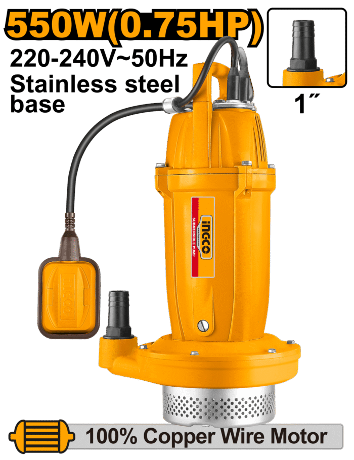 The INGCO 550W Submersible Pump (Model: SPC55068) is a high-performance and durable pump designed for water transfer, irrigation, drainage, and other industrial or domestic applications. Engineered for reliability and long-lasting operation, it features a robust construction with premium materials.
