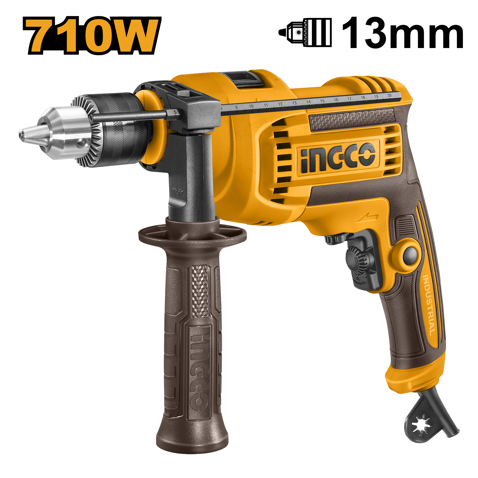 Tags: 13mm drill, 710W impact drill, color box packed drill, Compact Electric Drill, durable impact drill, Electric impact drill, forward reverse drill, hammer function drill, high-speed impact drill, home and professional use, ID7118, INGCO 710W drill, Ingco impact drill, INGCO power tool, Masonry Drill, metal and wood drill, professional drilling tool, reliable electric drill, Variable speed drill, Versatile drilling tool