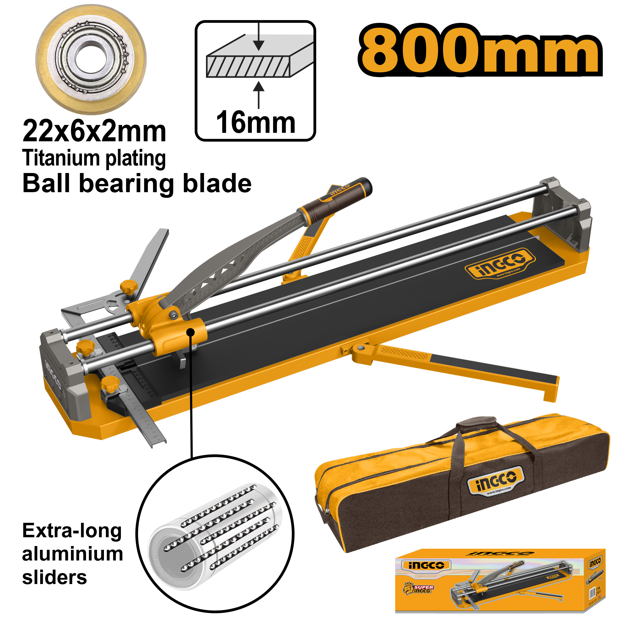 The INGCO 800MM Tile Cutter (HTC04802) offers precision cutting with an extra-long aluminum slider, tungsten carbide blade, and a sturdy steel base — ideal for professional tile installations.