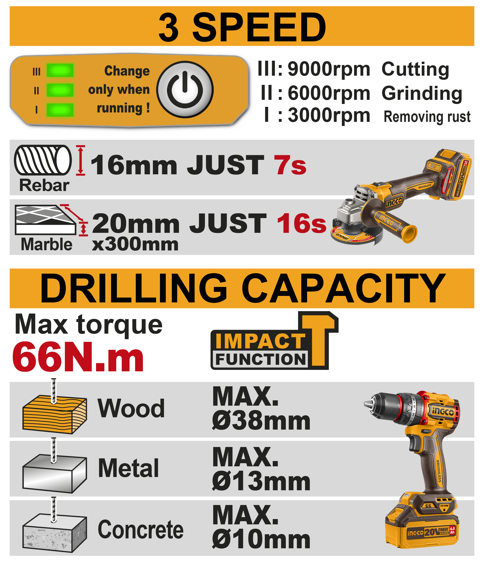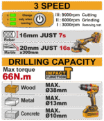 66Nm torque for strong and precise drilling