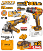 The INGCO P20S 66Nm Cordless 2-Pcs Combo Kit (CKLI2027310) is designed for professionals and DIY enthusiasts seeking a powerful, versatile toolset. This kit includes: