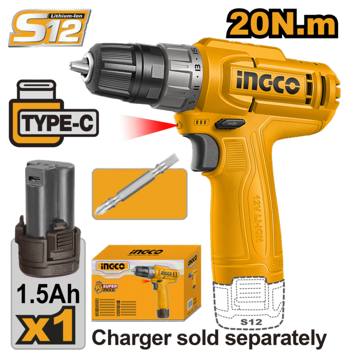 INGCO S12 20nm Cordless drill , CDLI12456 – Buytoolkit